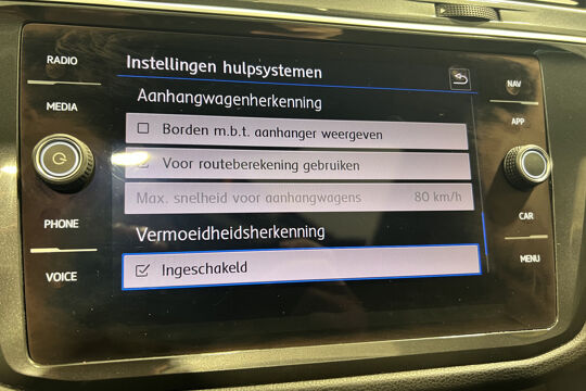 Zoals u mag verwachten van deze Volkswagen Tiguan is hij uitgerust met een reeks aan actieve veiligheidssystemen. Onderweg fungeert de verkeersbord-detectie als het ware als uw bijrijder en attendeert u op de verkeersborden langs de weg. Mooi binnen de lijnen van de rijstrook blijven? Het Lane-keeping systeem helpt altijd een handje. In een noodsituatie waarschuwt forward collision warning bij een dreigende aanrijding met een voorligger. Bovenop deze veiligheidsfeatures heeft deze Volkswagen bovendien hill hold functie, brake assist, vermoeidheidsherkenning en bandenspanningcontrolesysteem.