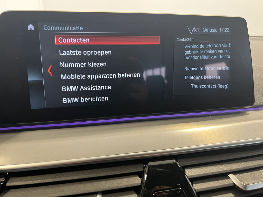 Kommaar-kommaar-kommaar, aldus de achteruitrijcamera. Iedere centimeter vrije ruimte komt haarscherp in beeld. Schadevrij inparkeren maar! In deze 5-serie vindt u niet alleen schakelaars op het stuur om het navigatiesysteem met harde schijf te bedienen en het audio-installatiesysteem met DAB-ontvangst, maar er is ook spraakbediening. Telefoon onderweg aan de lader? Daar komt geen kabeltje aan te pas, want deze BMW 5-serie is voorzien van een draadloze oplaadmogelijkheid voor telefoons. Omdat u nu eenmaal niet overal ogen heeft, is deze BMW 5-serie voorzien van een achteropkomend verkeer waarschuwing die registreert wanneer de afstand tot uw achterligger te krap is. De automatische airconditioning zorgt voor een behaaglijk klimaat in de auto. Extra opties op deze auto zijn: WIFI-hotspot, schakelpaddles aan het stuur, regensensor, cruise control, dvd-systeem en isofix-aansluiting.