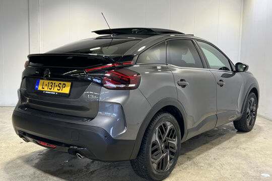Zijn dynamische uiterlijk maakt al direct duidelijk wat voor rijervaring u van deze Citroën C4 mag verwachten: pure sportiviteit. Deze SUV wordt aangedreven door een krachtige driecilinder benzinemotor. De lederen bekleding benadrukt de luxe uitstraling van deze auto. Een goede zithouding is essentieel voor een fitte rit. Daarom is deze auto uitgerust met comfortstoelen. Qua licht en ruimtelijk gevoel zit het helemaal goed met het elektrisch bediende panoramadak. In deze Citroën profiteert u onder andere ook van: 18 inch lichtmetalen velgen, Full LED koplampen, halflederen bekleding, adaptief dempingsysteem, geluidsisolerende ramen en in delen neerklapbare achterbank.